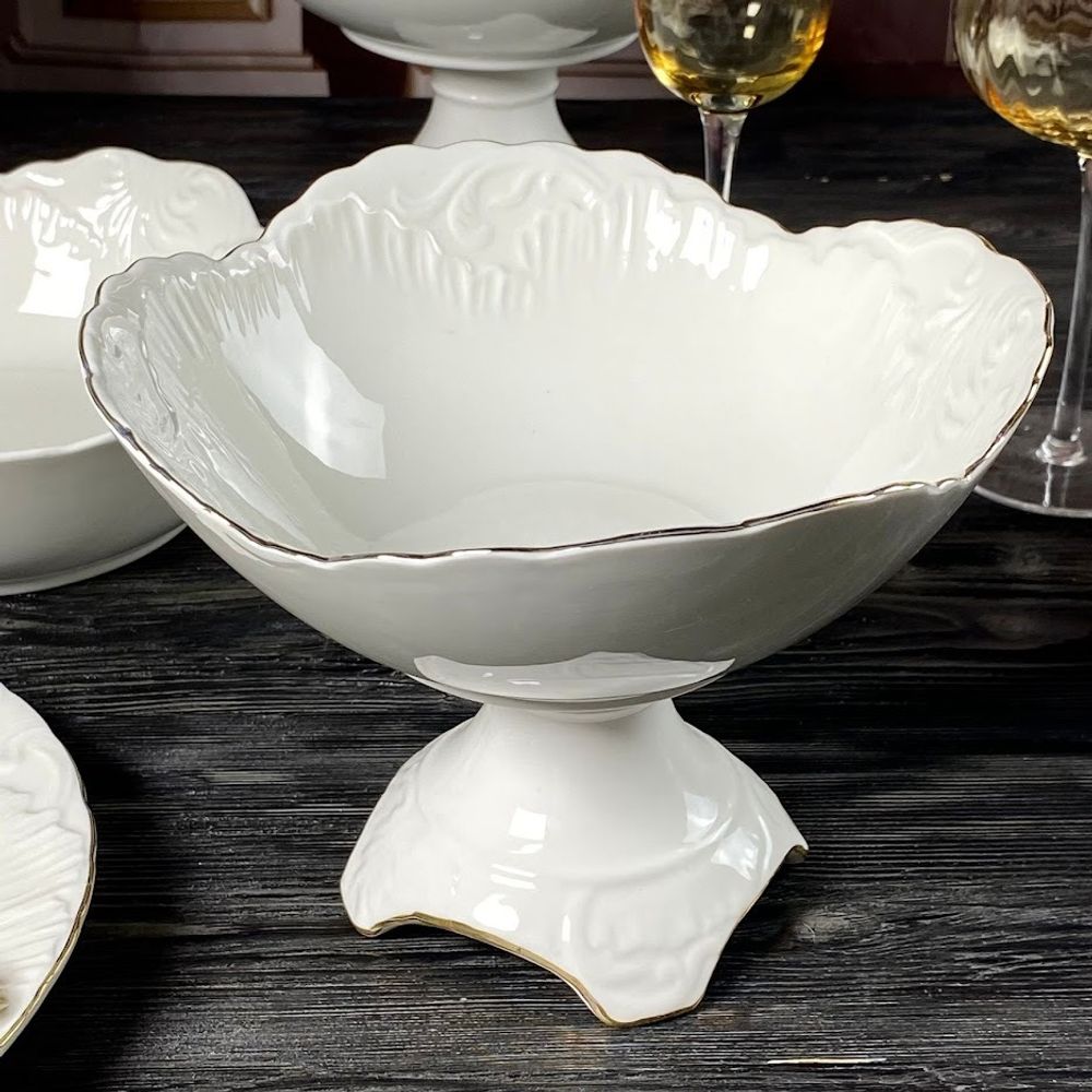 Lenardi 305-074 Фруктовница 25,5см на ножке АВРОРА ЗОЛОТО в под.уп.(х8)Фарфор