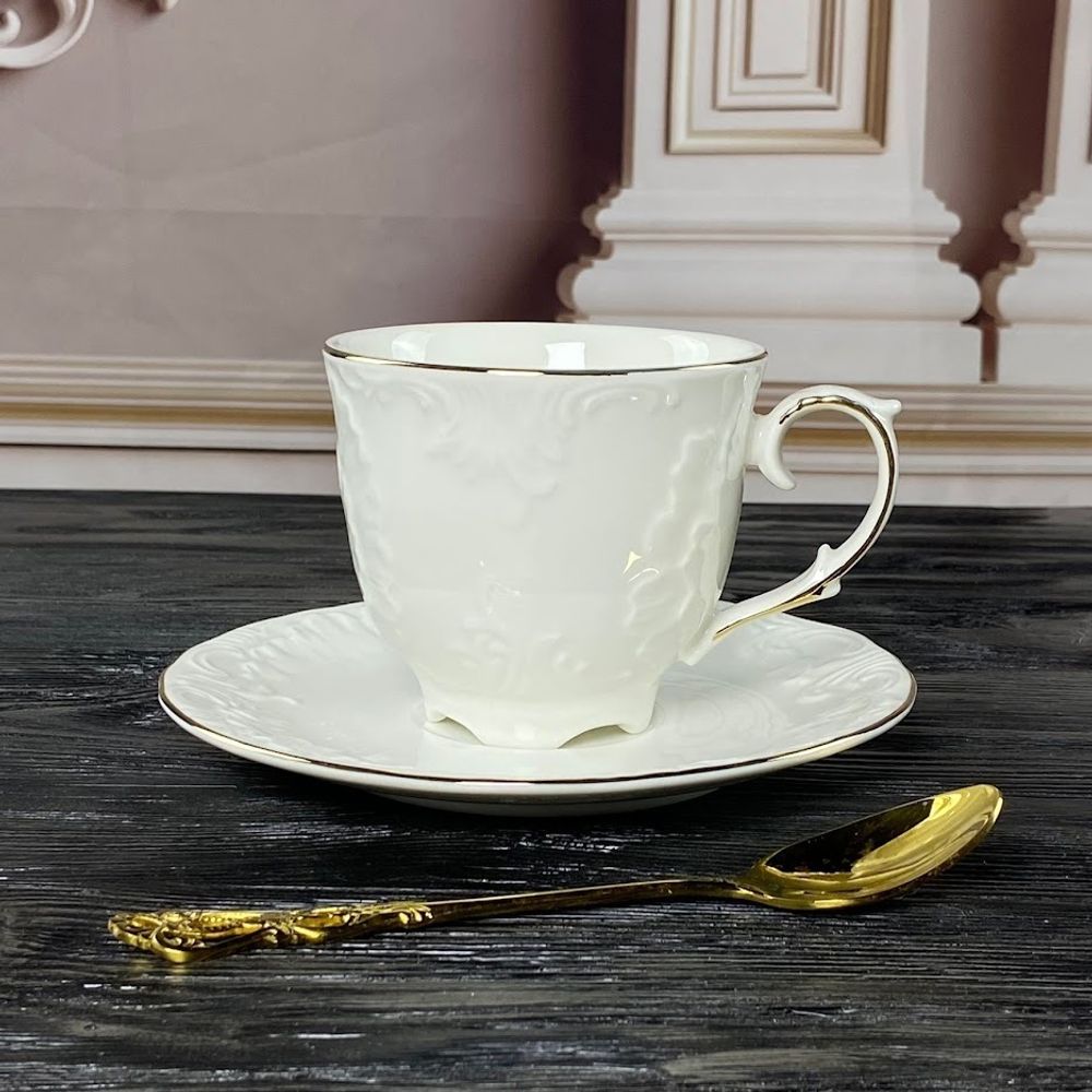 Коллекция посуды АВРОРА ЗОЛОТО изготовлена из белоснежного фарфора. Посуда выполнена в классическом европейском дизайне, с использованием рельефного рисунка. Край декорированаккуратной золотой обводкой,