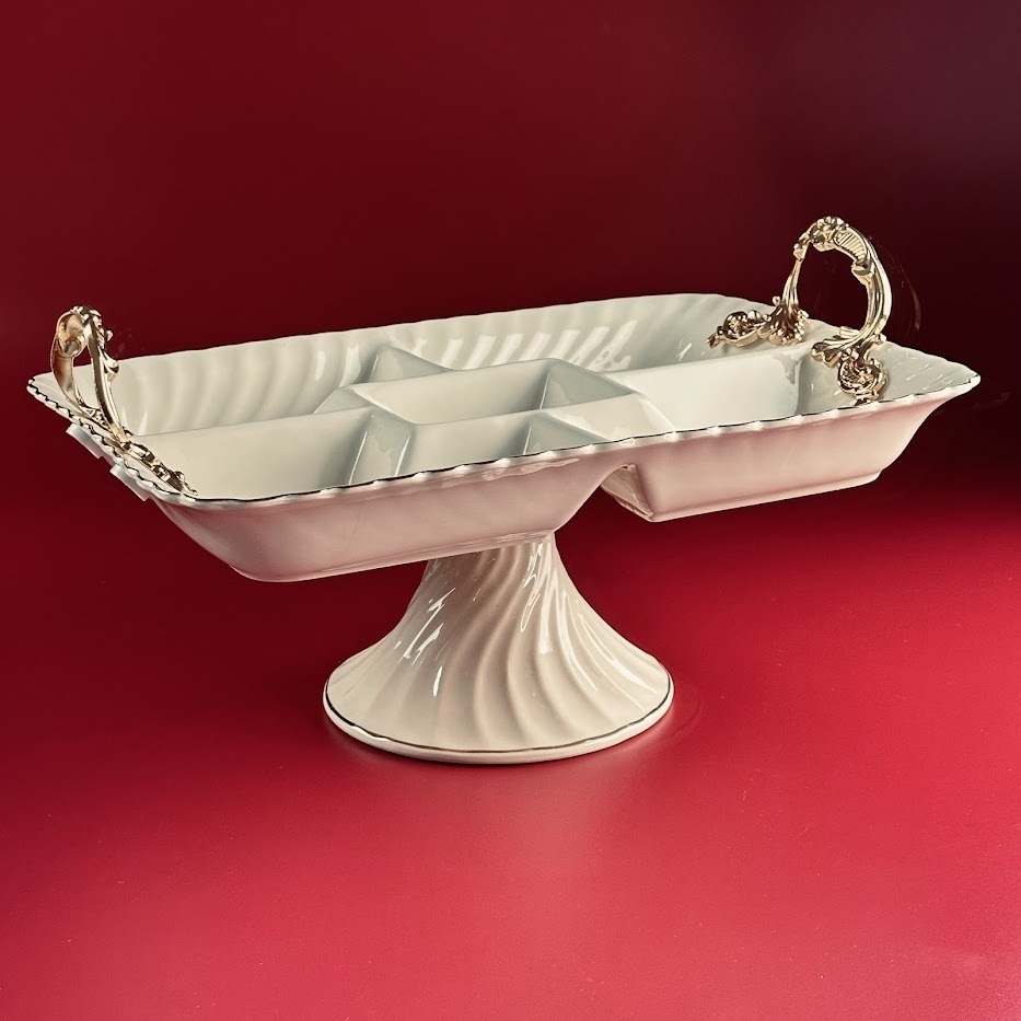 Lenardi 305-129 Менажница 35,5см на ножке с ручками ЖОЗЕ в под.уп.(х4)Фарфор