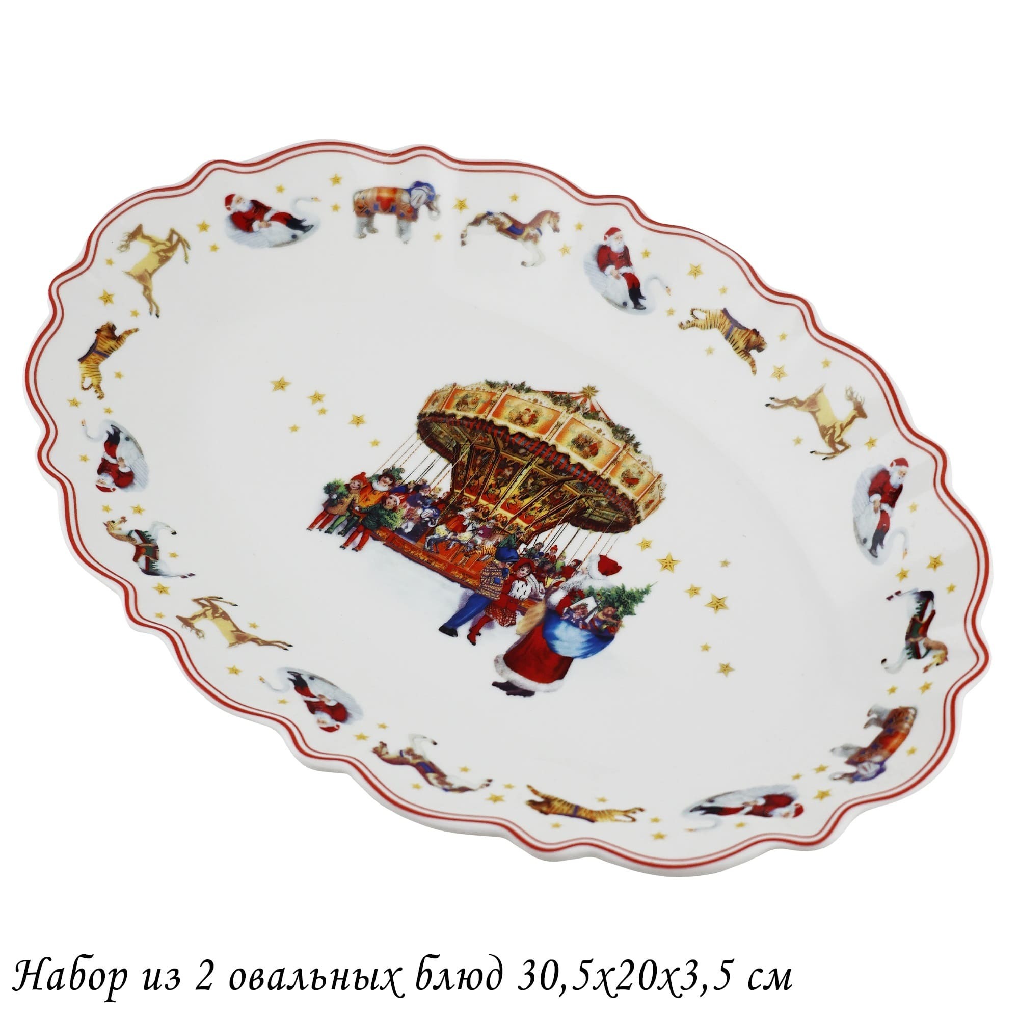 Lenardi 305-172 Набор из 2 овальных блюд 30,5х20х3,5см НОВЫЙ ГОД в под.уп.(х12)Фарфор