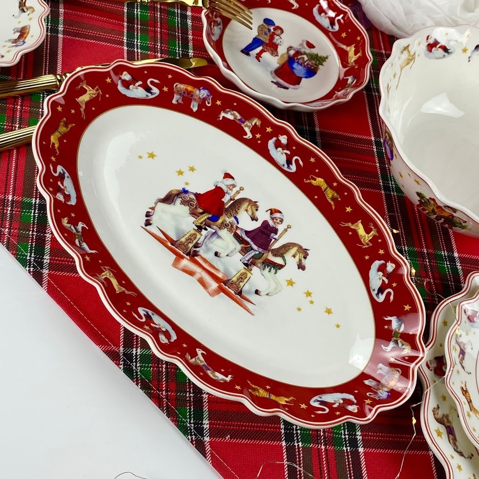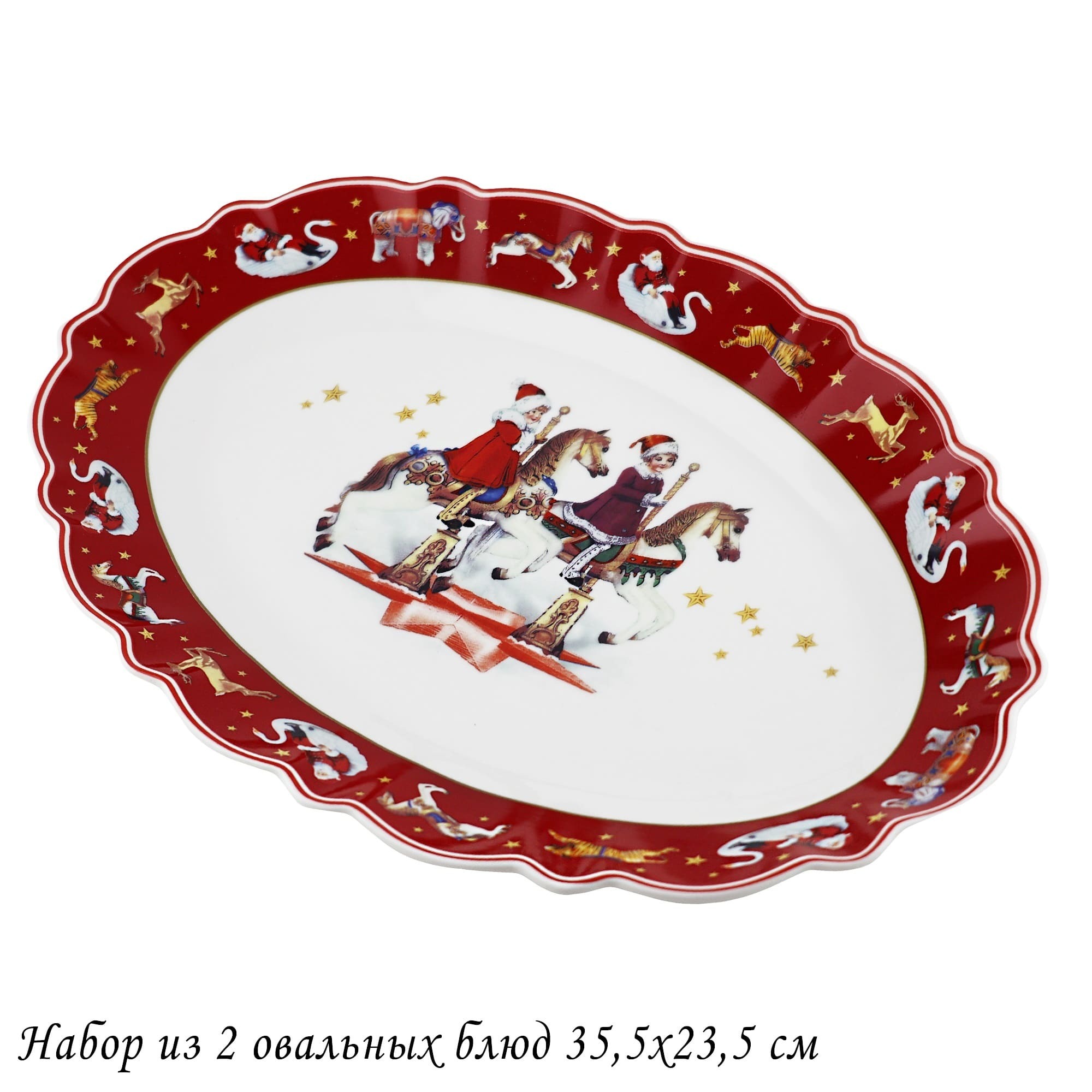 Lenardi 305-173 Набор из 2 овальных блюд 35,5х23,5х3,5см НОВЫЙ ГОД в под.уп.(х12)Фарфор