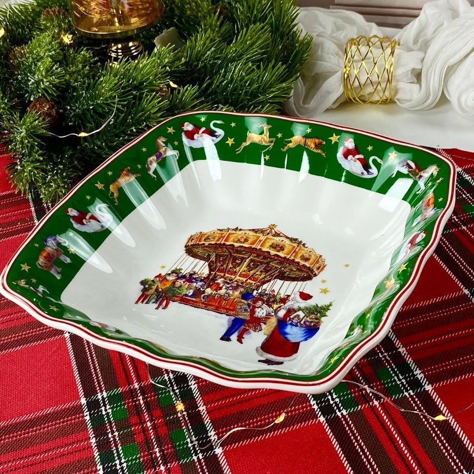 Lenardi 305-182 Квадратный салатник 22.5х6см НОВЫЙ ГОД в под.уп.(х18)Фарфор