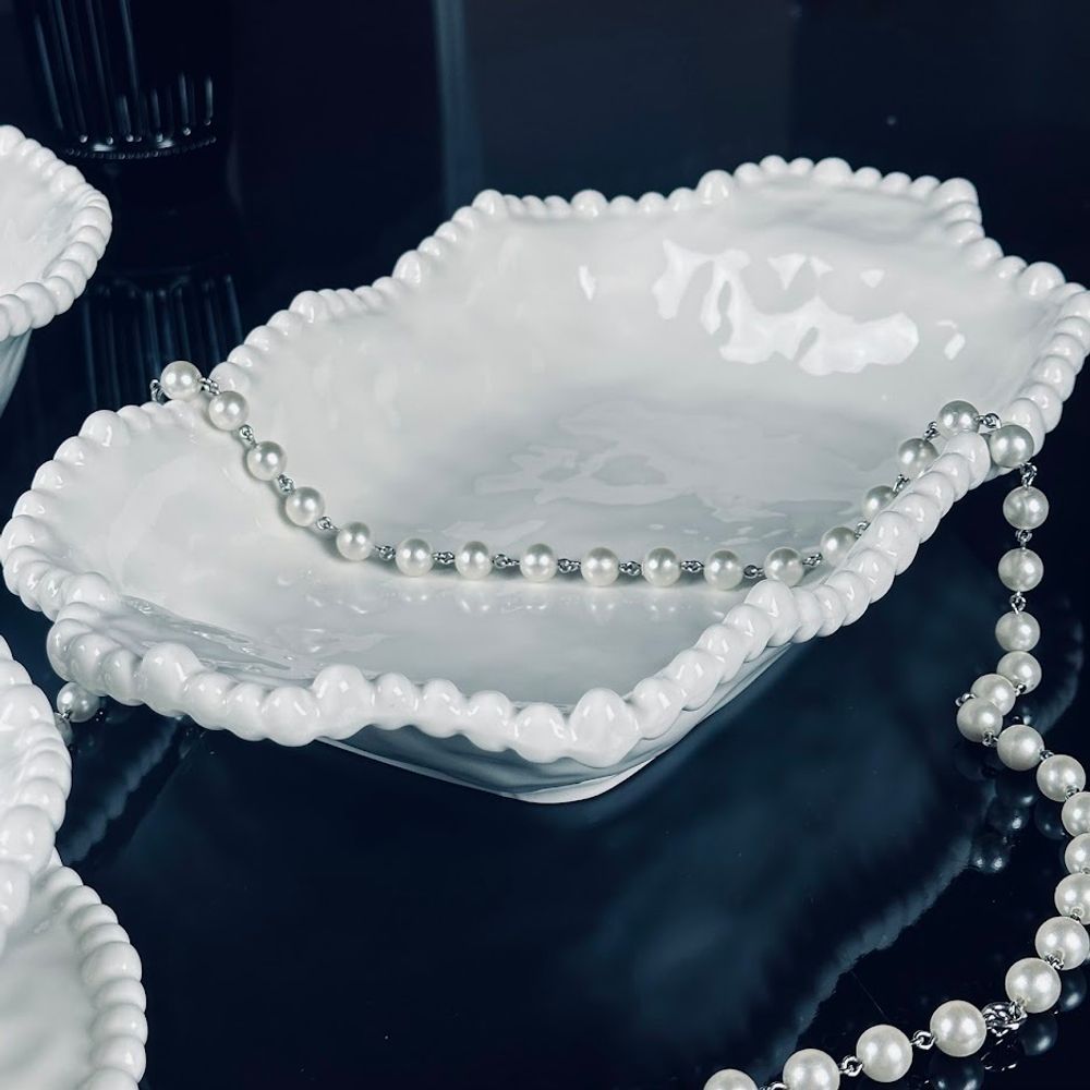 Коллекция посуды из фарфора МАРИНЕТ, выполнена из качественного фарфора и покрыта белоснежной эмалью. Волнистые края с отделкой небольшими жемчужинами напоминают край морской волны, легкая текстура напоминает поверхность моря Идеальная посуда для сервировки новогоднего, праздничного и повседневного стола . Материал фарфор Можно использовать в микроволновой печи и мыть в посудомоечной машине, при температуре не выше 60 градусов без использования агресивных моющих средств