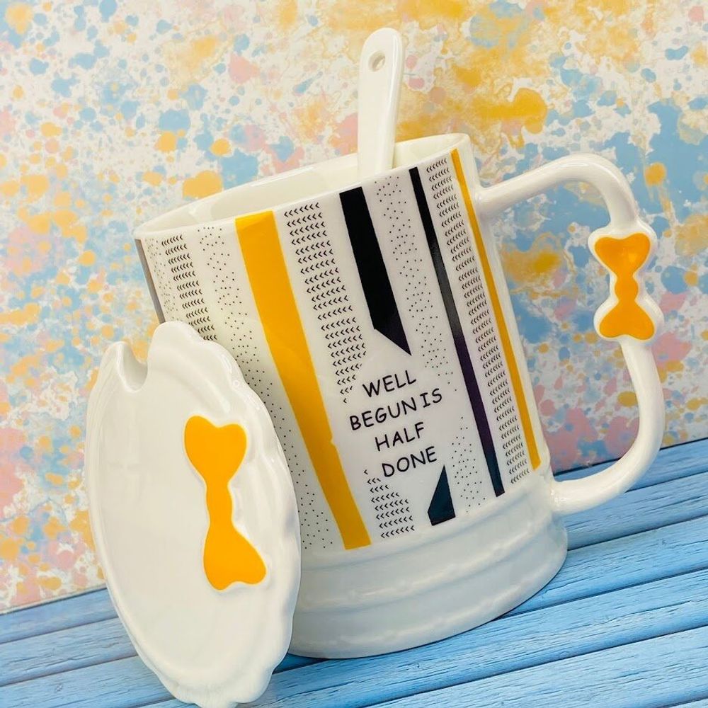 Lenardi 315-051 Кружка 400мл с крышкой и ложкой в под.уп.(х36)Фарфор