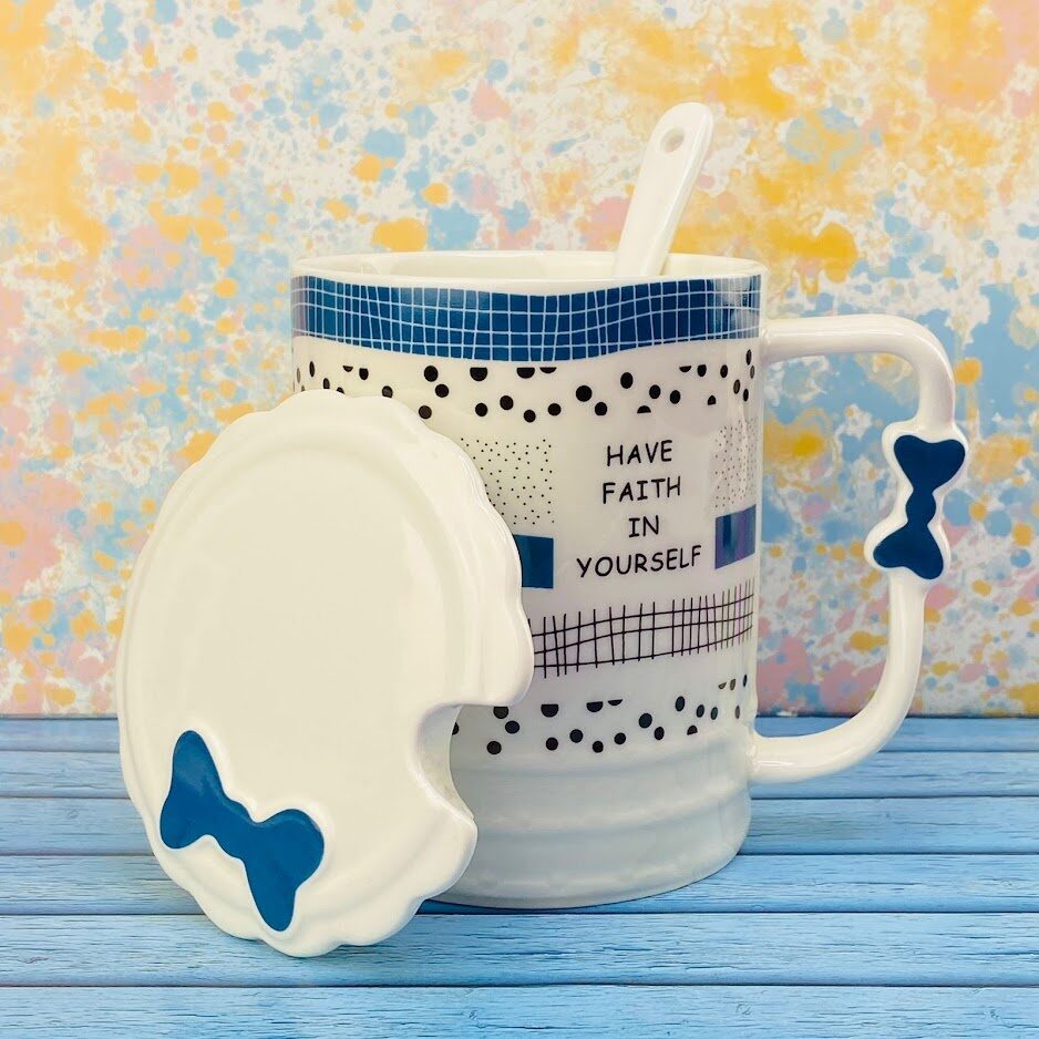 Lenardi 315-052 Кружка 400мл с крышкой и ложкой в под.уп.(х36)Фарфор