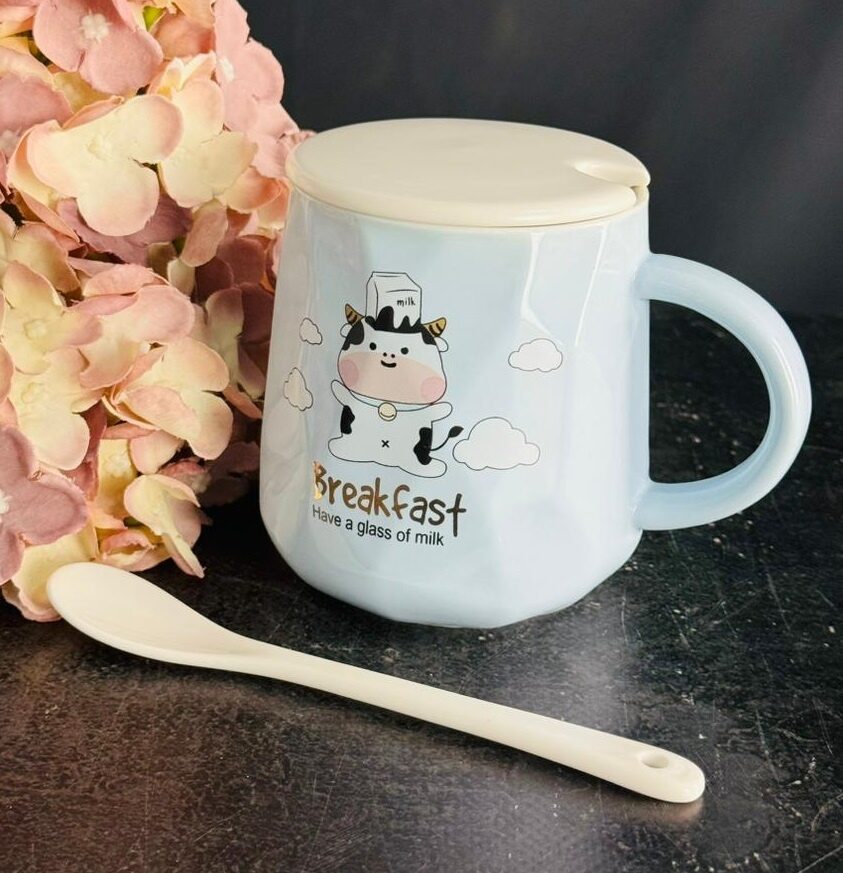 Lenardi 315-056 Детская кружка 420мл с крышкой и ложкой в под.уп. (х36)Фарфор