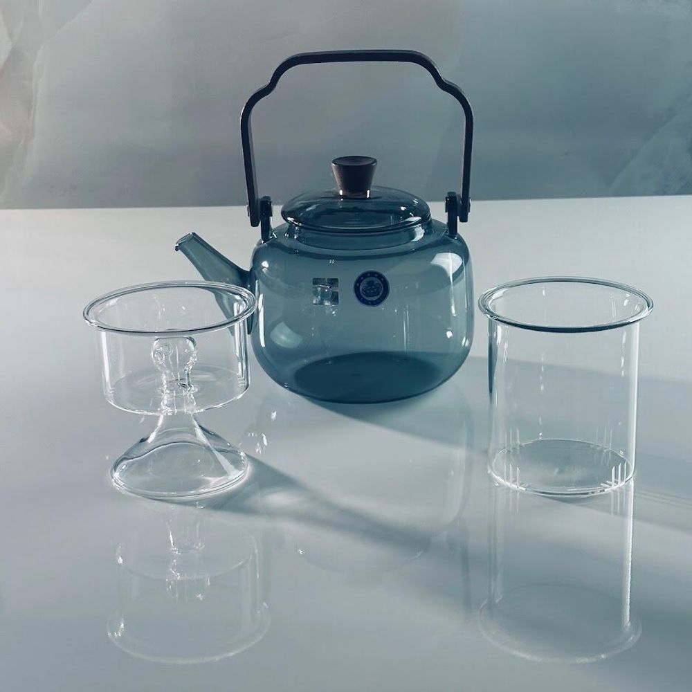 Чайник заварочный из жаропрочного стекла. В наборе идут две вставки из стекла, одна для чая, другая капельная для кофе. Ручка выполнена из натурального дерева