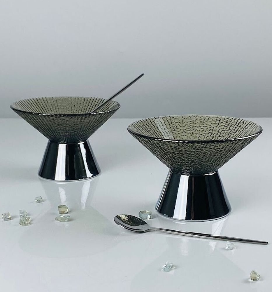 Lenardi 588-720 Набор из 2 креманок 12см 150мл с ложками в под.уп.(х18) Стекло