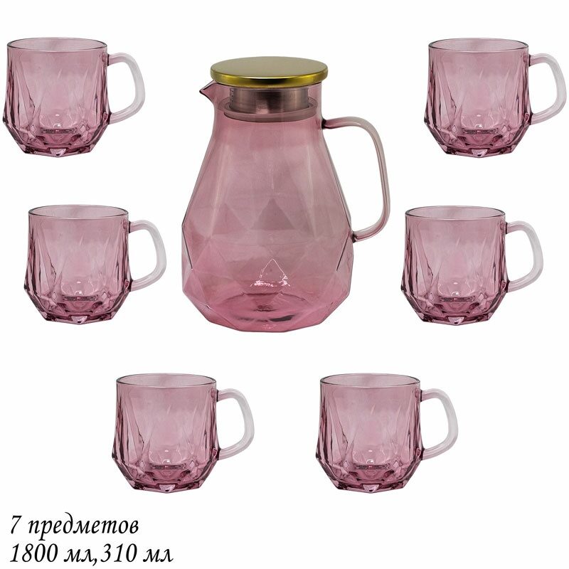 Lenardi 589-016 Набор: кувшин-заварник 1,9 л и 6 кружек 350 мл розовый, в под.уп.(х8)