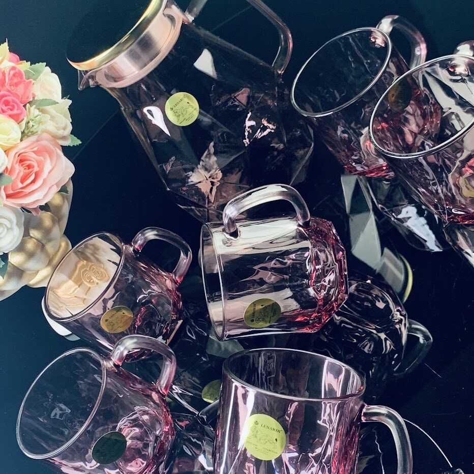 Набор: кувшин-заварник 1,9 л и 6 кружек 350 мл Кувшин-заварник с крышкой можно использовать как для горячих, так и холодных напитков. Выполнен из жаропрочного термостойкого боросиликатного стекла, его можно нагревать на газовой, электрической плите и кипятить в нём воду, подогревать напитки. Кувшин-заваник с золотой крышкой и фильтром. Чайник кувшин можно использовать для заваривания чая, трав. Материал: боросиликатное стекло Нельзя мыть в посудомоечной машине. Мыть мягкой губкой без абразивных средств.