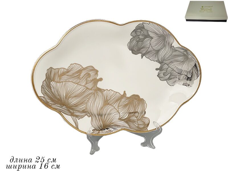 Коллекция посуды МИЛЛЕНИУМ выполнена из фарфора, Оригинальная дизайнерская форма в виде распустившегося цветка, с тонким двухцветным цветочным декором в золоте и в серебре. Коллекция состоит из сервизов и отдельных предметов.