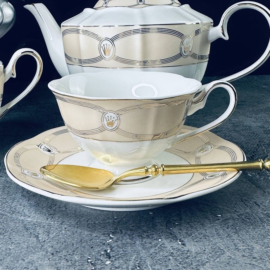 Не рекомендуется использовать в микроволновой печи и мыть в посудомоечной машине, по причине возможного повреждения золотого декоративного покрытия.