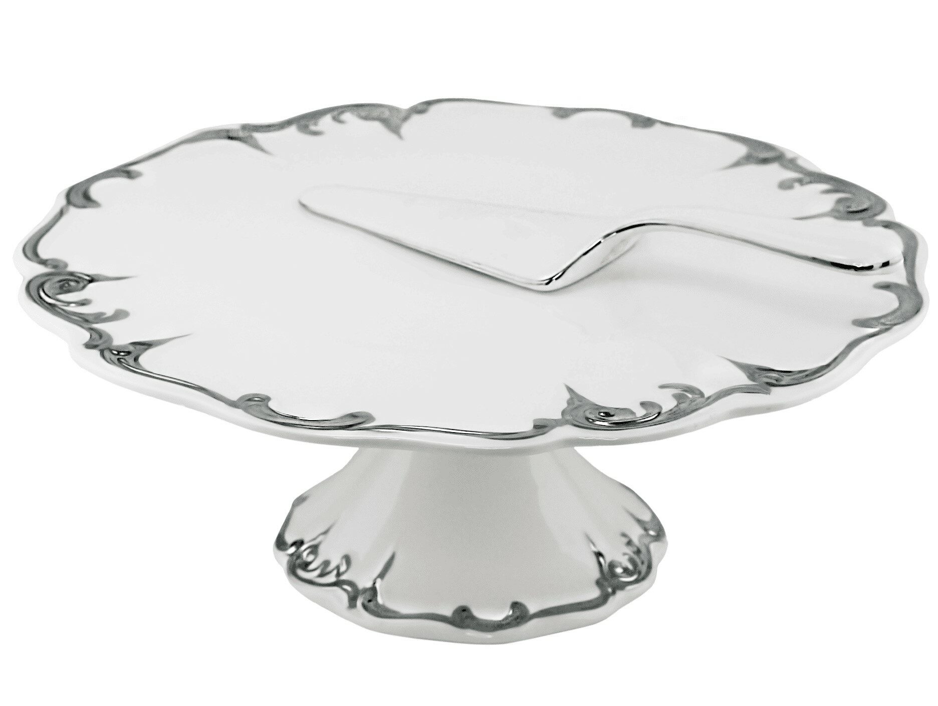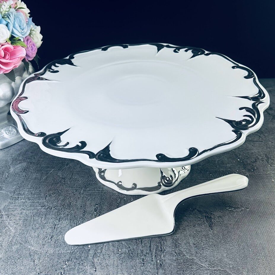 Lenardi 666-398 Тортовница 31см на ножке с лопаткой ARGENTO в под.уп.(х2)Фарфор