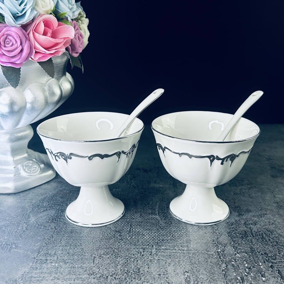 Lenardi 666-405 Набор из 2 креманок 9см ARGENTO с ложками в под.уп.(х8)Фарфор