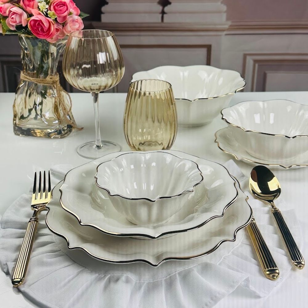 Новая коллекция посуды из фарфора КАМЕЛИЯ изготовлена из высококачественного фарфора. Посуда белого цвета, идеальна для любого интерьера и стиля. Оригинальная форма и золотая обводка добавляют роскоши и изысканности.