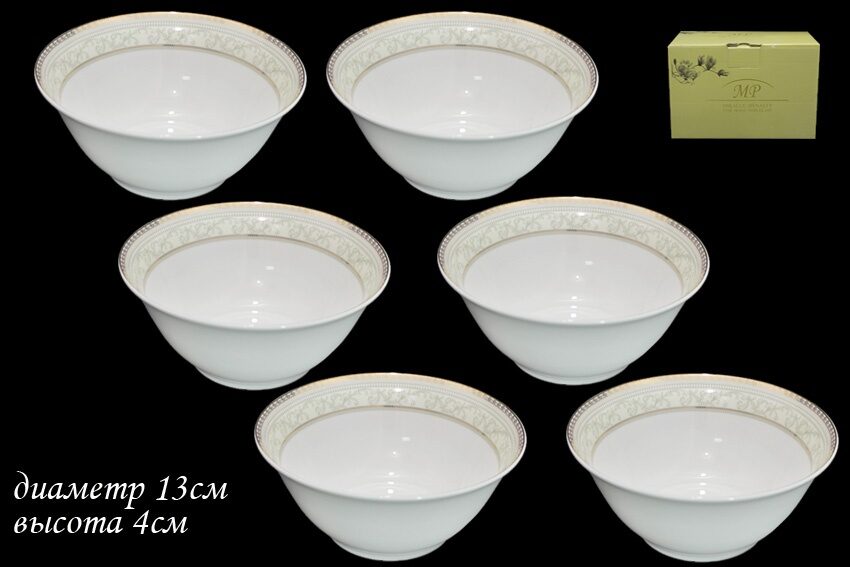 775-021 Набор из 6 салатников 13см. в под.уп. ЭЛЕГАНТ (х8) Костяной фарфор.