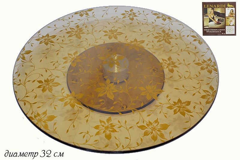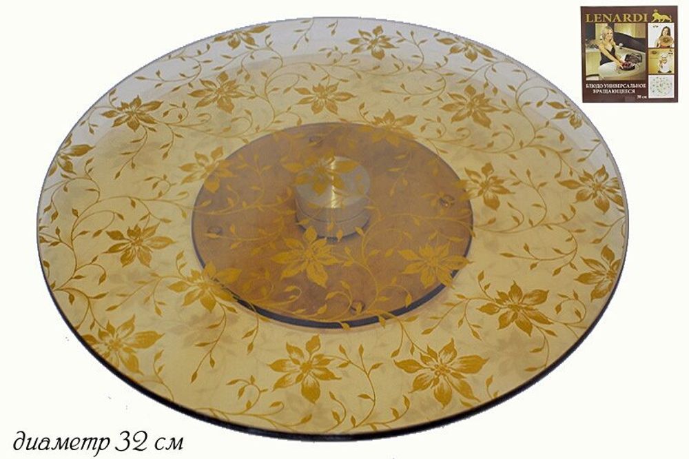 Lenardi 888-046 Тортовница вращающаяся "Золотой цветок 32см тёмная (х11)