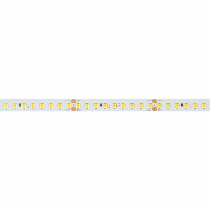Светодиодная высокоэффективная лента RT-A144, открытая. Светодиоды 2835, 144 шт/м (720 шт на 5 м), белая плата, ширина 10 мм, скотч 3M. Цвет ТЕПЛЫЙ 2700 K, цветопередача CRI>85, угол 120°. Питание 24 В, мощность 7.7 Вт/м (38.5 Вт на 5 м). Размеры 5000x10x1.6 мм. Мин. отрезок 62.5 мм, 9 светодиодов. Цена за 1 м.