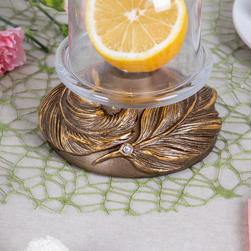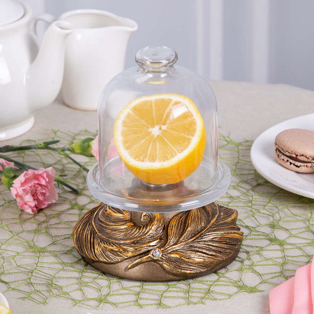 Лимонница BOGACHO - поистине царское украшение вашего стола. Изящная подставка под лимон отлично подойдет для фруктов, овощей и десертов. Лимонница с крышкой выглядит настолько роскошно, что ее сложно отнести к просто разряду кухонных принадлежностей, инвентарь для кухни, скорее это изысканный декор для кухни или столовой, праздничное сервировочное блюдо, которое наверняка обратит на себя внимание ваших гостей. В нашем ассортименте для сервировки стола Вы найдете стеклянные лимонницы у которых в основании скульптуры животных, цветов, ангелов. Контейнер для лимона запомнится Вашим гостям. Лимонницу можно использовать не только как посуду для сервировки стола на кухне, но и как элемент декора в гостиную, для дачи, для офиса, в беседку или в приемную.Основание лимонницы выполнено из натурального материала – литьевого мрамора. Данный аксессуар для дома подойдет для интерьеров в стиле лофт, сканди, минимализм, эклектика, романтизм. Посуда и текстиль могут быть любыми, ведь главное украшение стола всегда у вас под рукой!Для защиты стола от царапин, мы установили накладки из мягкой ткани, препятствующая истиранию поверхности.Подставка под лимон завернута в воздушно - пузырчатую пленку, ложемент и надежно упакована в коробку из гофрированного картона, поэтому данный аксессуар для интерьера приедет к вам не поврежденным. Любите, чтобы интерьер был в едином стиле? Присмотритесь к продукции BOGACHO, которая будет гармонично сочетаться друг с другом.