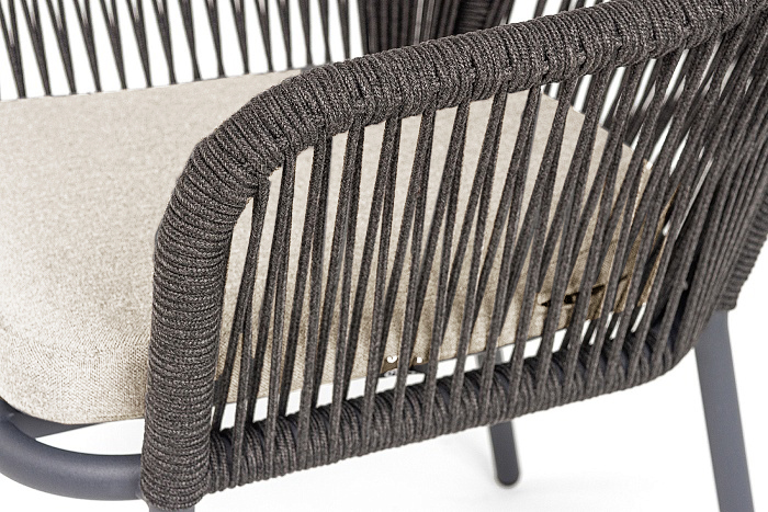 "Лион" стул плетеный из роупа, каркас алюминий темно-серый (RAL7024) муар, роуп темно-серый круглый, ткань бежевая 052