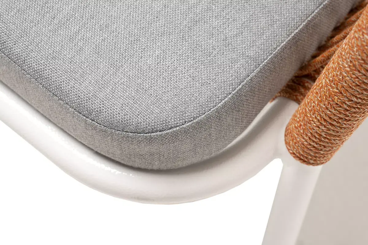 Подушка в комплекте со стулом выполнена из полиэстера 100% плотностью 300гр/м2 с влагоотталкивающей пропиткой. Это надежный и прочный материал, который легко очищается и устойчив к неблагоприятным погодным условиям.