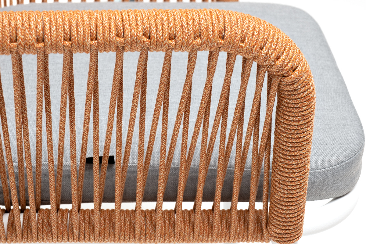 Стальной каркас гарантирует прочность и надежность, а плетение из эластичных лент высокопрочных полиэфирных волокон создает удобное и уютное сидение. Цвет оплетки - оранжевый меланж.
