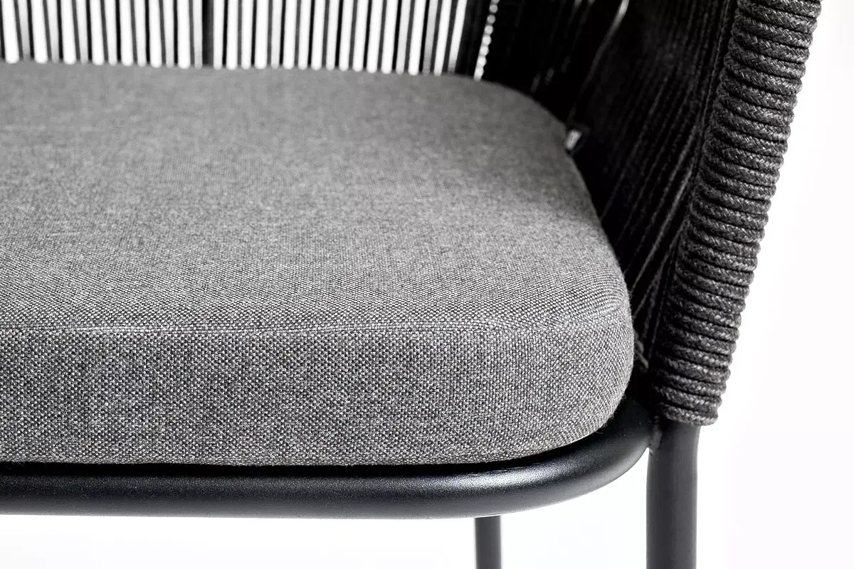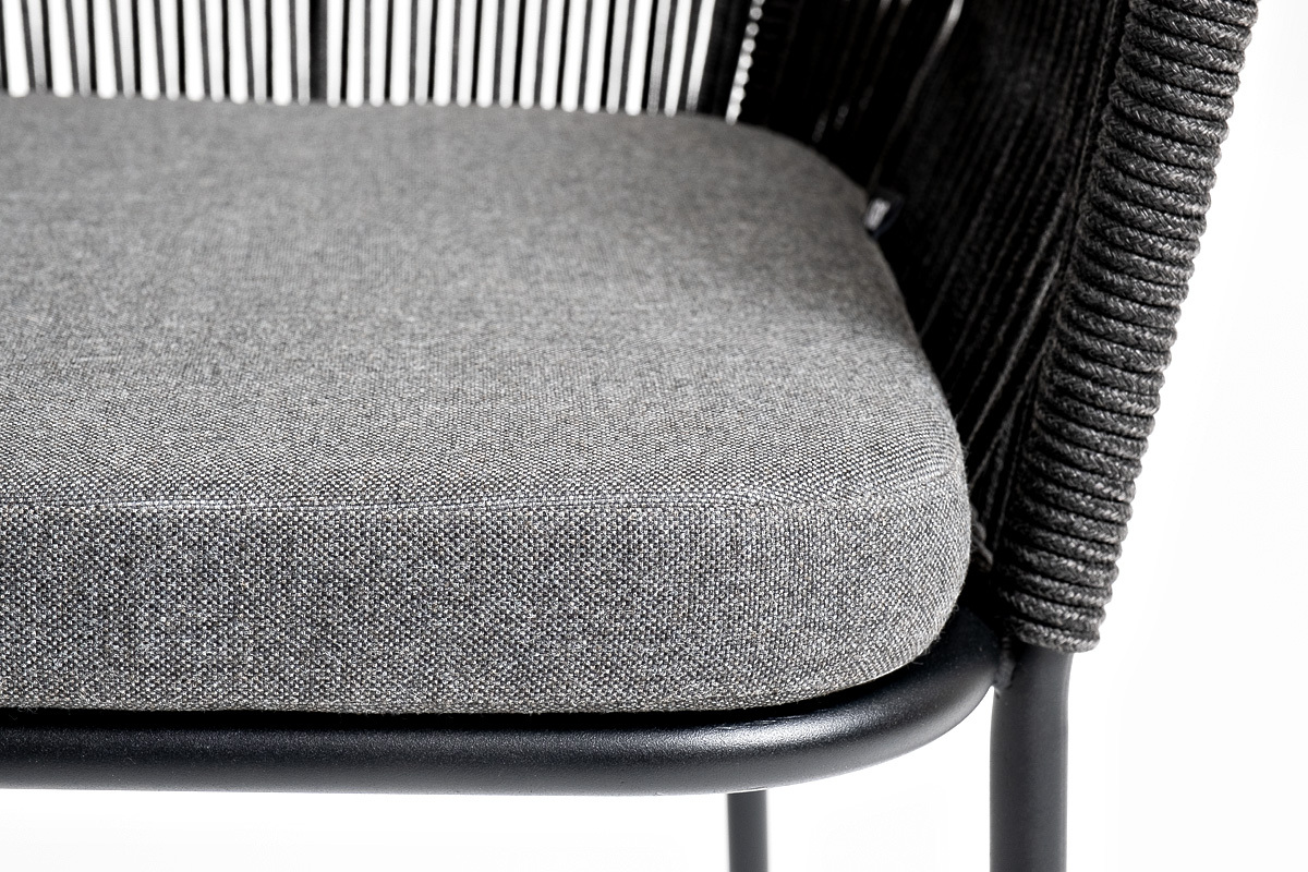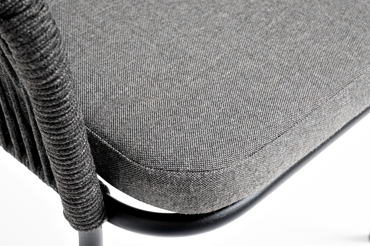 Подушка в комплекте со стулом выполнена из полиэстера 100% плотностью 300гр/м2 с влагоотталкивающей пропиткой. Это надежный и прочный материал, который легко очищается и устойчив к неблагоприятным погодным условиям.