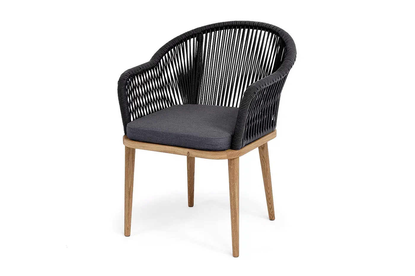 Плетеный стул «Лион» представляет собой удобное и стильное решение для дома или сада. Изготовленный из прочного дубового каркаса и оплетки из роупа темно-серого цвета, этот стул является отличным выбором для долгосрочного использования.