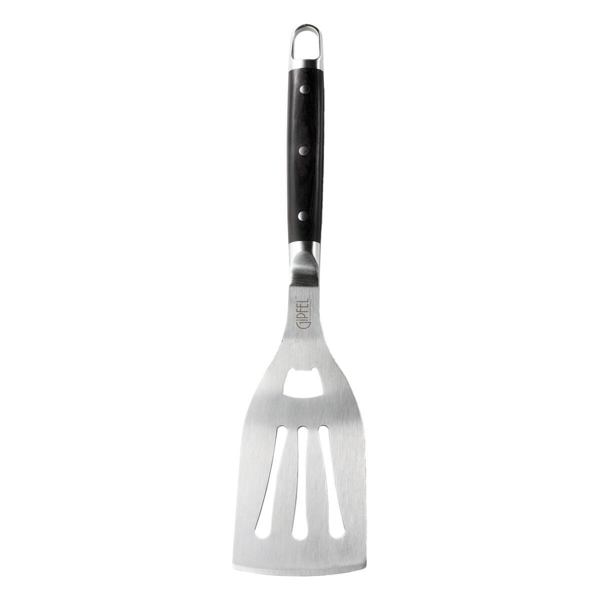 Лопатка для барбекю Gipfel MODENA 51259. Длина 41,5 см. Инструмент сделан из нержавеющей стали 2Cr14. Толщина 1,8 мм. Ручка выполнена из древеснослоистого пластика. На ручке имеется петля для подвешивания.