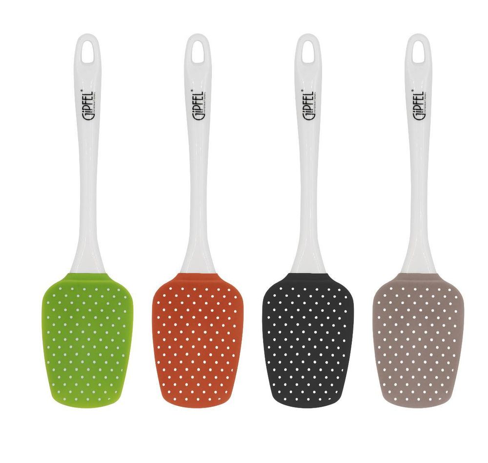 Лопатка Gipfel Sinty 51730. Размер 25,5х6 см. Стильная яркая силиконовая лопатка – незаменимый аксессуар на каждой кухне. Ее можно использовать с любыми емкостями, включая антипригарную посуду, так как силикон не оставляет следов и царапин. На конце пластиковой ручки имеется отверстие, позволяющее легко разместить лопатку на настенном держателе для кухонных принадлежностей. Благодаря стильному дизайну такой аксессуар отлично впишется в интерьер современной кухни. Лопатку можно очищать вручную или мыть в посудомоечной машине в эко-режиме.