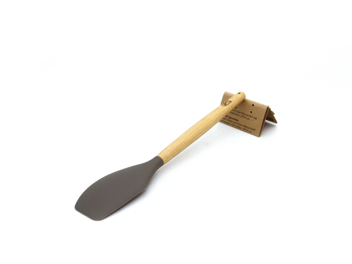 Лопатка Gipfel Eco 2043. Длина 32 см, ширина 6,5 см. Ручка сделана из бамбука. Рабочая поверхность силиконовая, что позволяет использовать лопатку с антипригарной посудой.