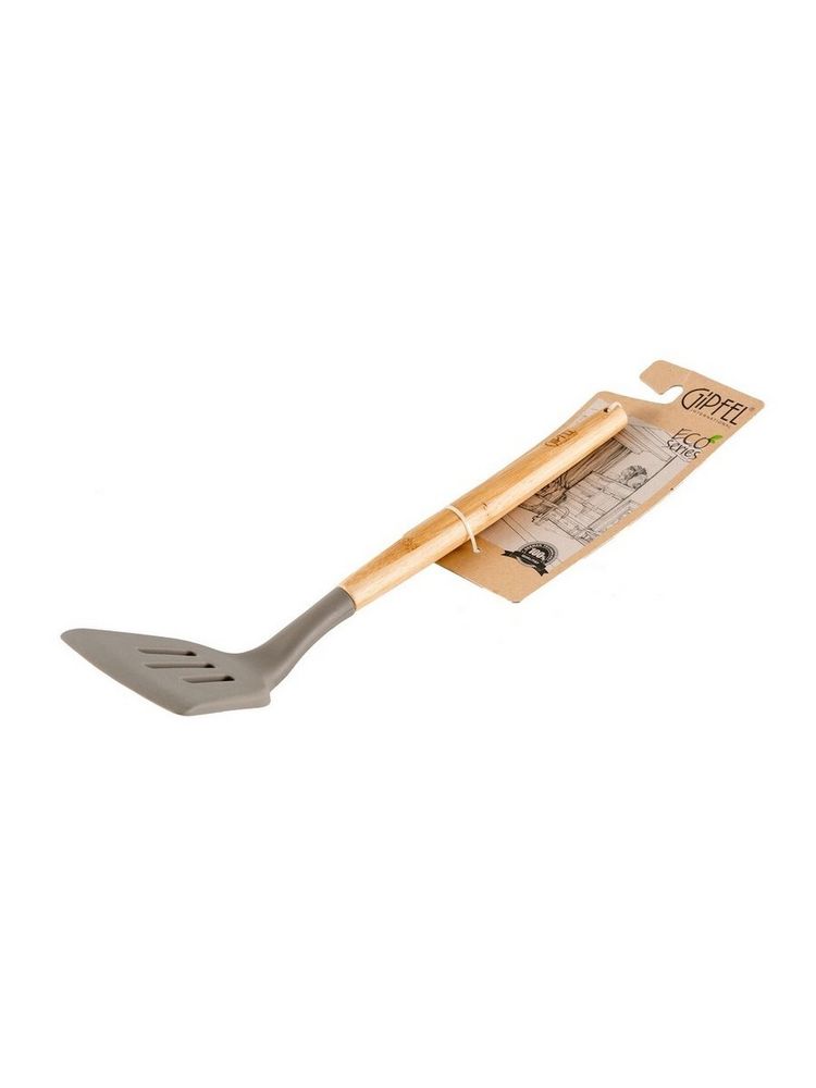 Лопатка GIPFEL ECO 9077. Длина лопатки 32см, ширина 8,5см. Ручка лопатки сделана из каучукового дерева. Рабочая поверхность силиконовая, что позволяет использовать лопатку с антипригарной посудой.