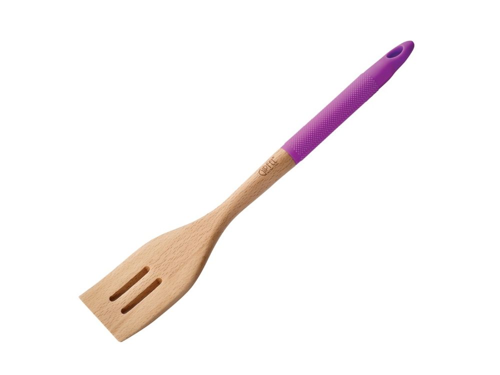 Лопатка с прорезями деревянная Gipfel Emilie 2874. Размер лопатки 35,6х6х2см. Лопатка сделана из дерева и имеет силиконовую ручку, что убережет от скольжения. Лопатку можно использовать с посудой, имеющей антипригарное покрытие.