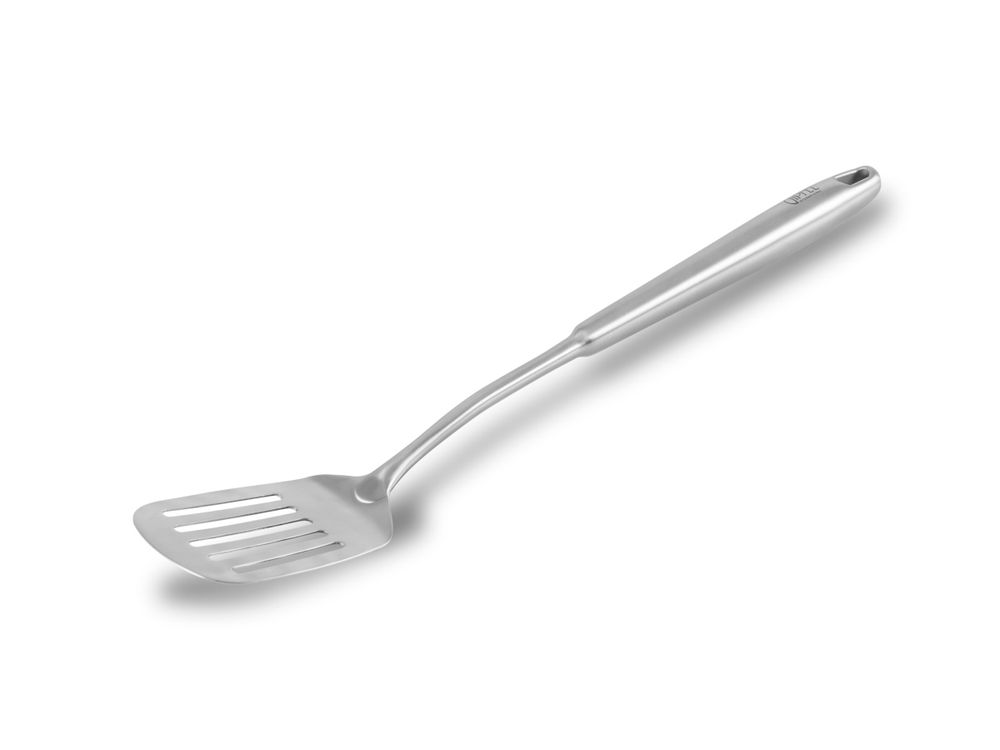 Лопатка с прорезями Gipfel 2184 Sharm — приемлемое решение для любителей жареных блюд: жир легко стекает обратно в посуду для готовки, а гуляш, стейк, рыба остаются нежными. Модель выполнена из нержавеющей стали. Металл отличается санитарно-гигиеническими свойствами, не впитывает запахи и легко очищается с помощью простых губок и моющего средства. Также допускается использование посудомоечной машины. Аксессуар порадует исполнением: универсальная стилистика позволит вписаться в интерьер каждой кухни. Благодаря длине 40 см риск обжечься о сковороду сводится к нолю.