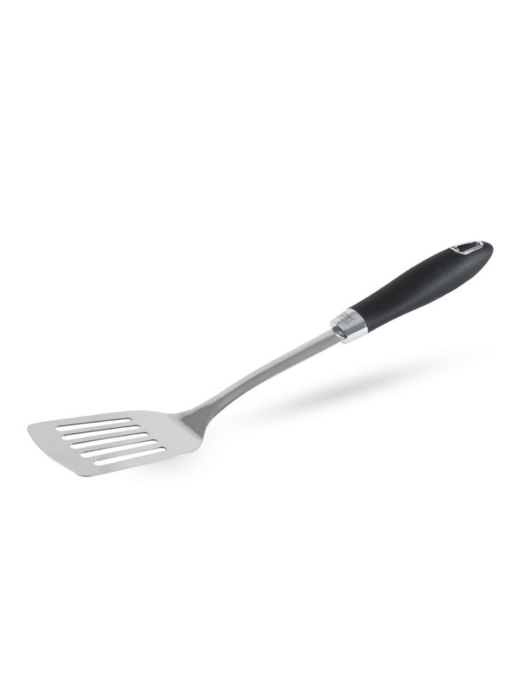 Лопатка с прорезями Gipfel MONTEGO 9313. Длина лопатки 37 см. Ручка из термопластичной резины и пластика черного цвета. Лопатка сделана из нержавеющей стали и цинкового сплава. Подойдет для сковород из чугуна или нержавеющей стали без покрытия.