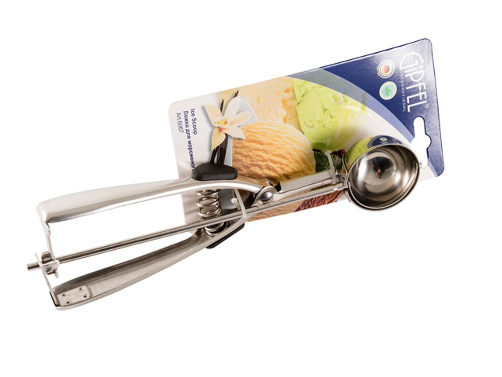 Ложка для мороженого Gipfel 6067. Размер: 21х6х2,8 см. Сделана из нержавеющей стали AISI430. Механизм позволяет делать идеально круглые и ровные шарики мороженого. Добавьте сироп, посыпьте орехами или шоколадом – и аппетитно сервированный десерт готов.