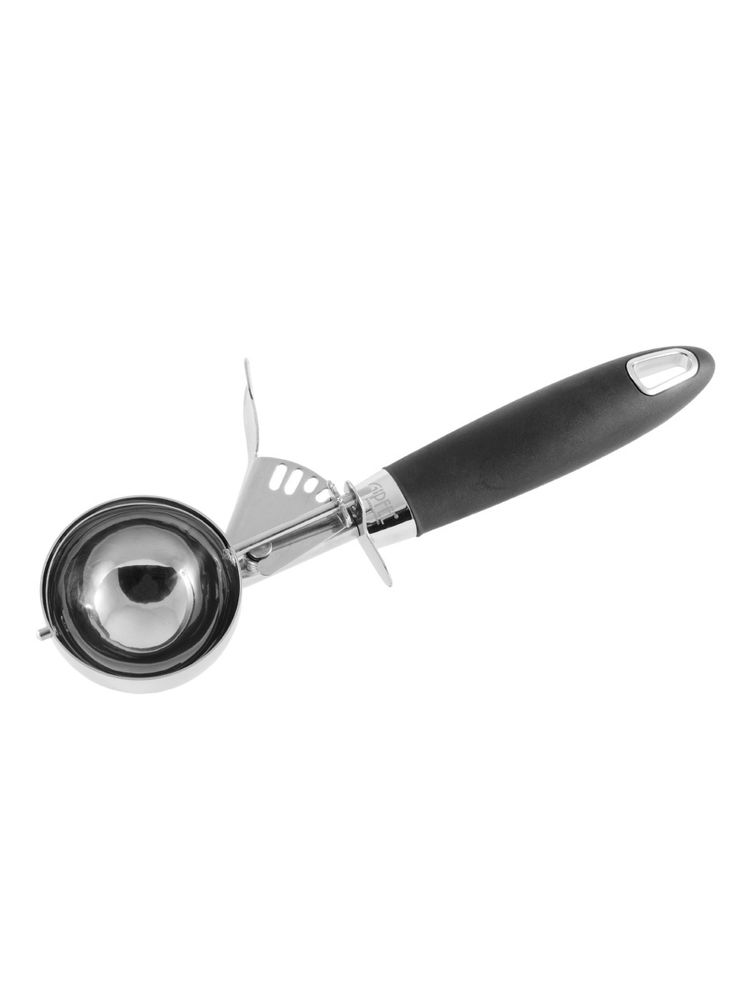 Ложка для мороженого GIPFEL MONTEGO 9334 25см. Материал: нержавеющая сталь, пластик, термопластичная резина, цинковый сплав. Диаметр шарика - 6 см. Ложка незаменима для создания ровных шариков мороженого. Добавьте сироп, посыпьте орехами или шоколадом – и аппетитно сервированный десерт готов.