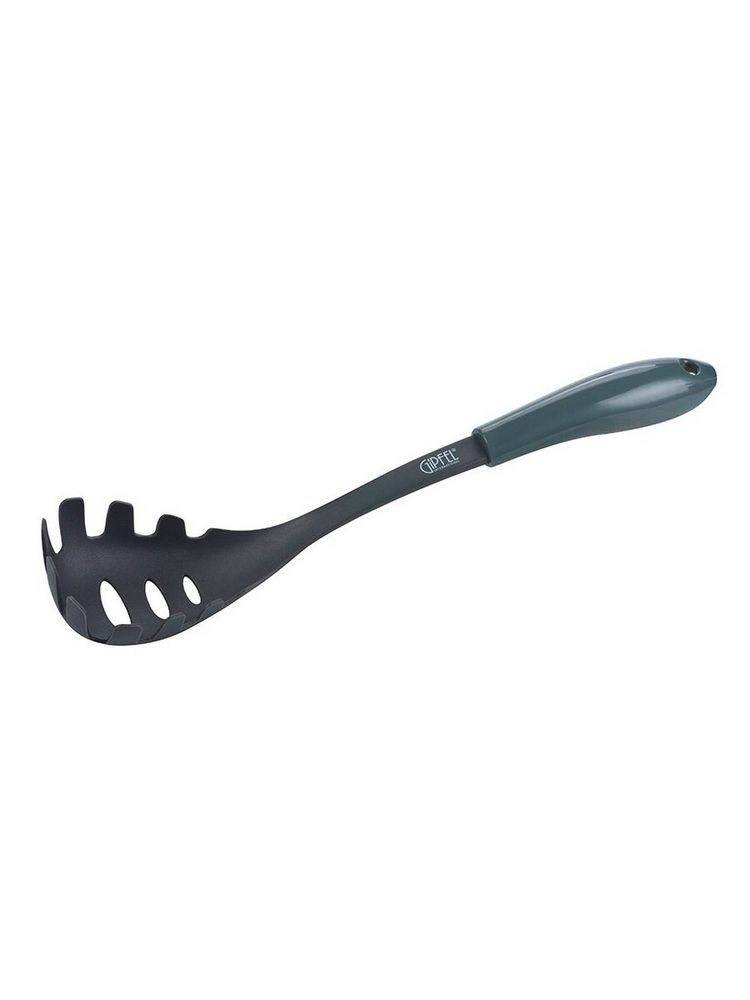 Ложка для спагетти Gipfel Centurion 0282. Длина 31,8х7,2 см. Ручка выполнена из пластика, имеет петлю для подвешивания. Непосредственно ложка сделана из нейлона, поэтому ее можно использовать с кастрюлями, имеющими антипригарное покрытие.