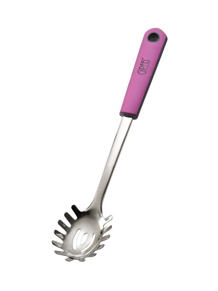 Ложка для спагетти GIPFEL OMEGA 2051. Размер ложки 33х6см. Ручка выполнена из фиолетового пластика, рабочая часть - из нержавеющей стали 18/0.