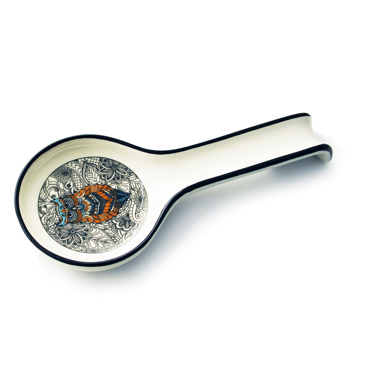 Ложка подстановочная GIPFEL CIVETTA 3965. Размер ложки 27x12см. Ложка выполнена из толстой керамики белого цвета с изображением совы.