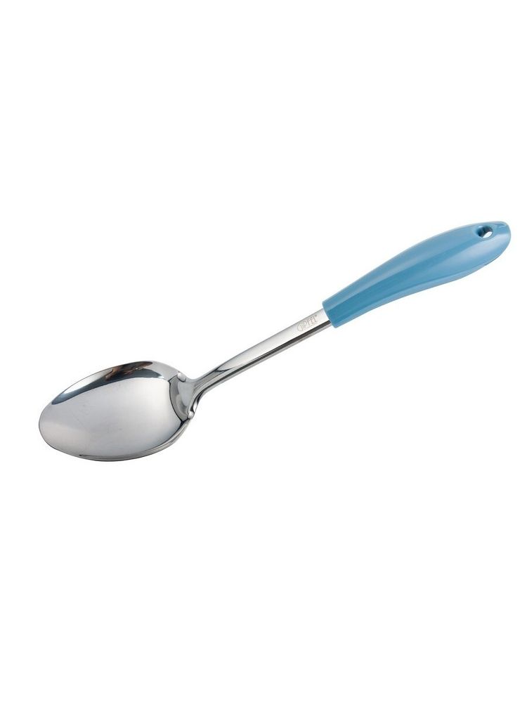 Ложка GIPFEL CENTURION 6417. Ложка выполнена из нержавеющей стали 18/0 с пластиковой ручкой голубого цвета. Подойдет для использования с посудой из нержавеющей стали.