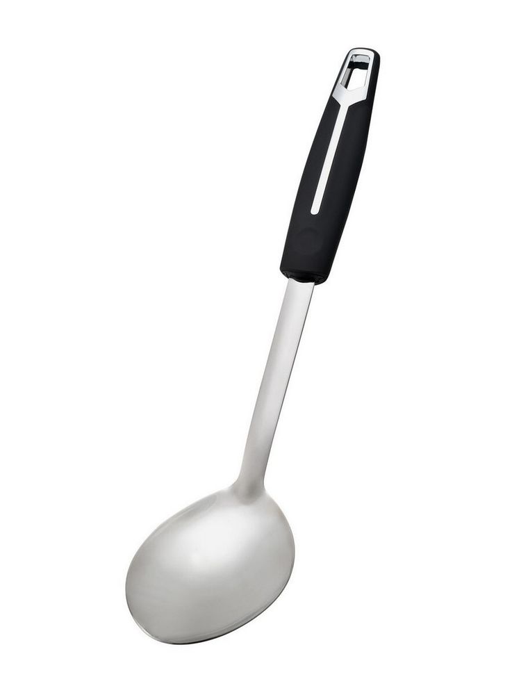 Ложка поварская Gipfel Comet 2063. Ложка изготовлена из нержавеющей стали, которая гарантирует долговечность и стойкость к коррозии, и пластика. Чёрная ручка, выполненная из высококачественного пластика, не только стильно смотрится, но и обеспечивает удобный и надежный захват.