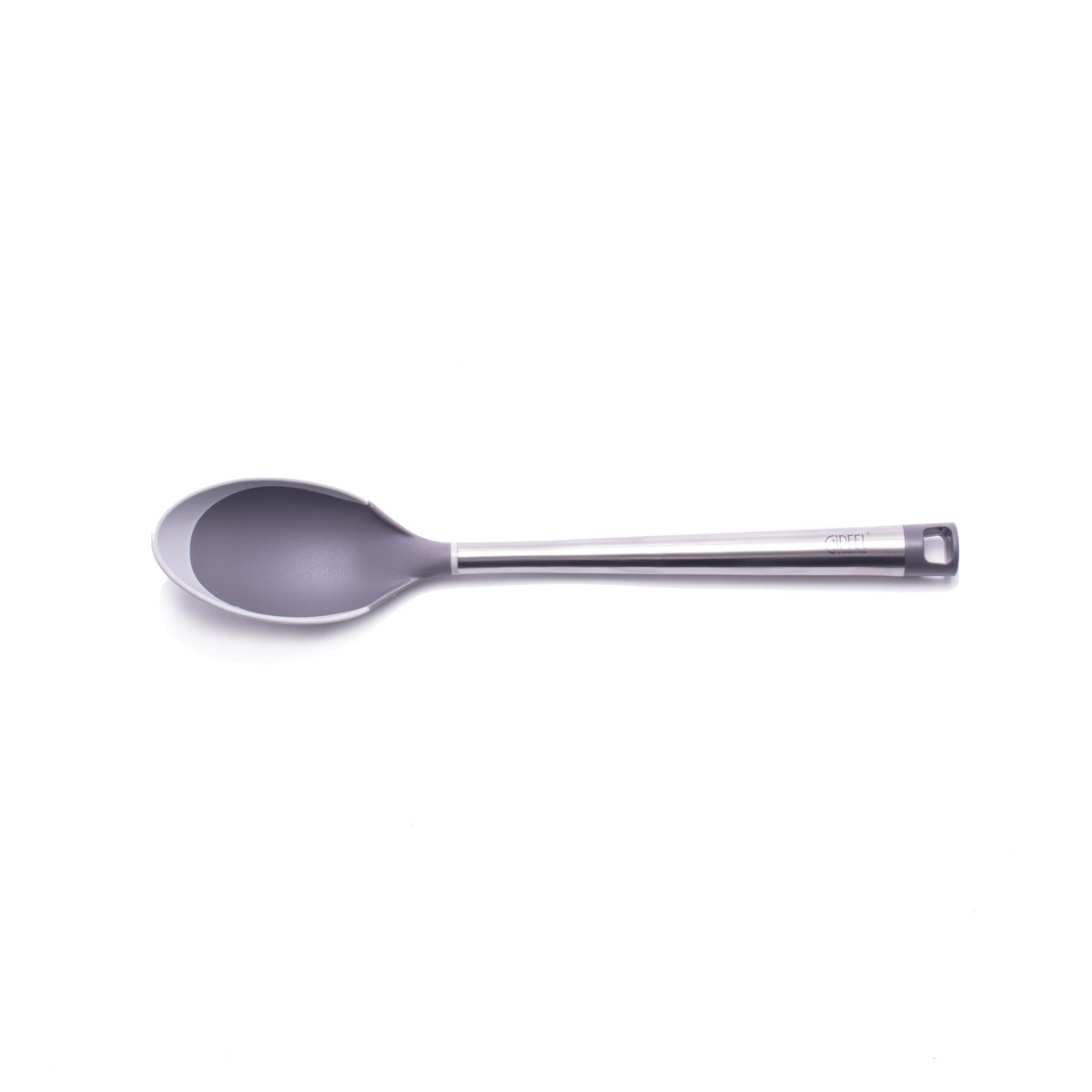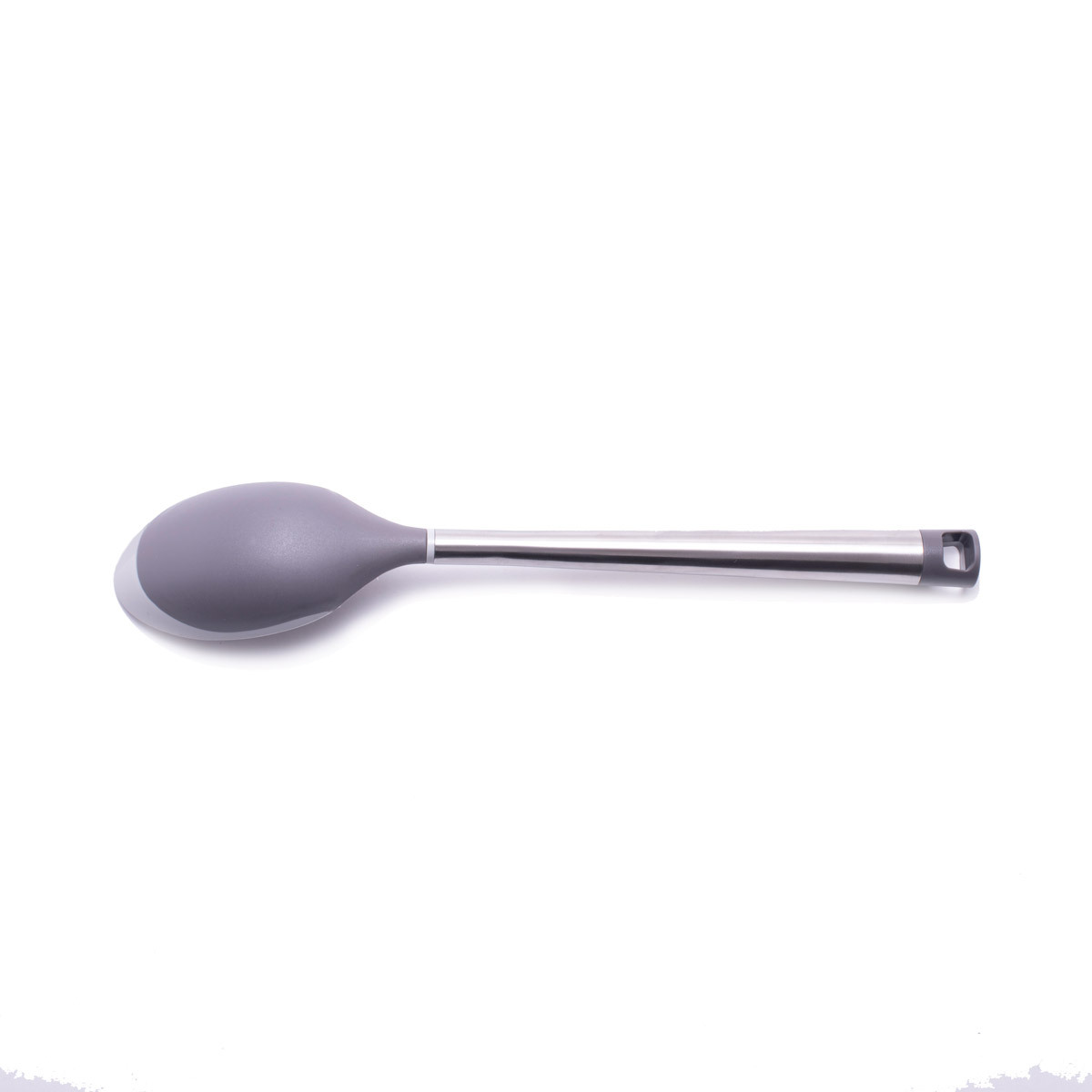 Представленная в серии Gruber силиконовая ложка для мультиварки выполнена из безопасных материалов: нейлона и силикона (чашечка), а также нержавеющей стали (рукоятка), прошедших необходимую санитарно-гигиеническую сертификацию. За счет продуманной конструкции аксессуар не царапает поверхность ведерка мультиварки или хлебопечки, продлевая срок их службы, и не передает жар на рукоять, защищая пользователя от риска ожога. Подходит модель и для сковород с антипригарным покрытием. Ею можно перемешать, перекладывать, снимать пробу с блюд. Материалы не вступают в реакцию с продуктами питания, поэтому с их помощью можно готовить мясо, рыбу, варенье и джемы.