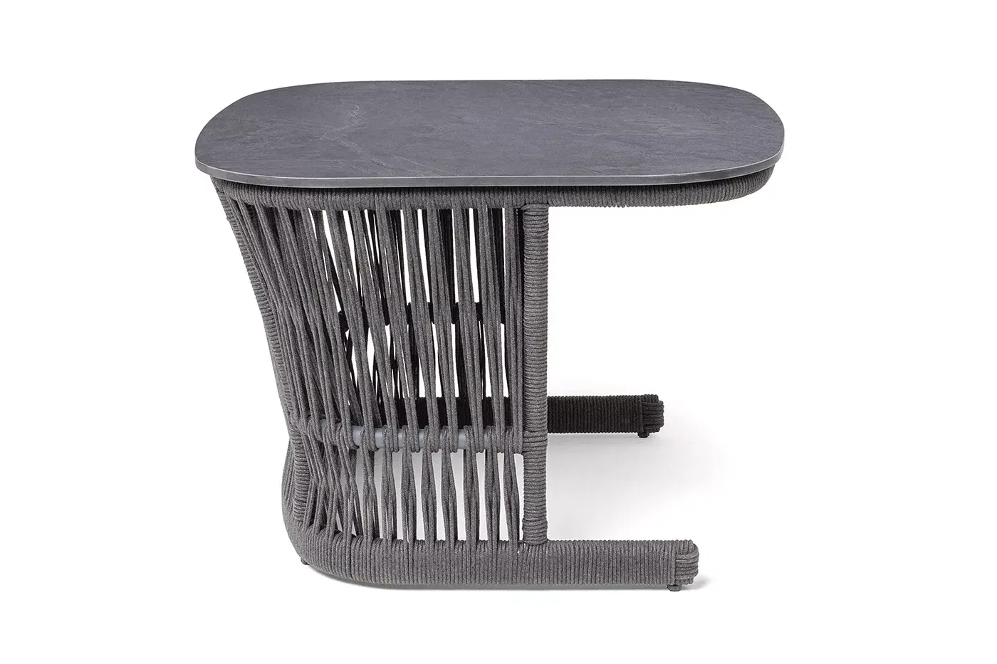 Подстолье - алюминиевая профильная труба, окрашенная износостойкой краской в темно-серый цвет. Нижняя часть задекорирована эластичными синтетическими лентами, состоящими из высокопрочных полиэфирных волокон, аналогичного оттенка.