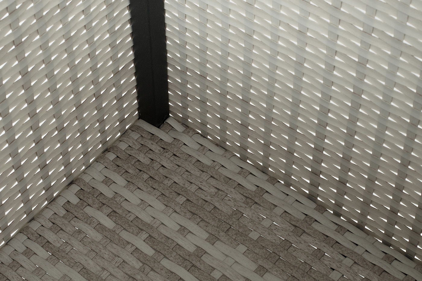 В основе алюниевый каркас, который вручную оплетен ротангом.