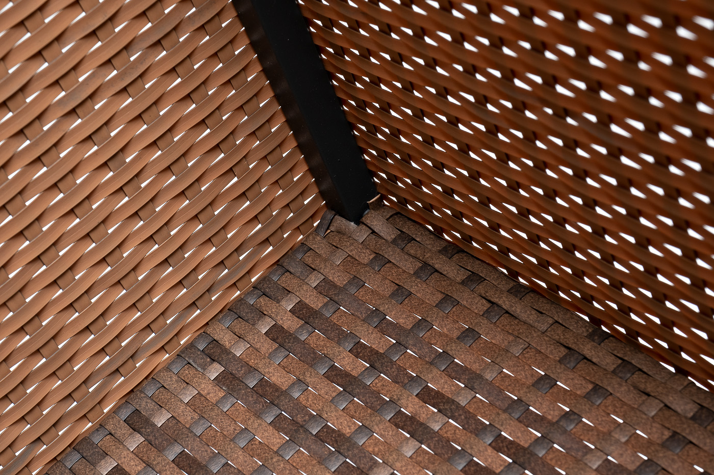 В основе алюниевый каркас, который вручную оплетен ротангом.