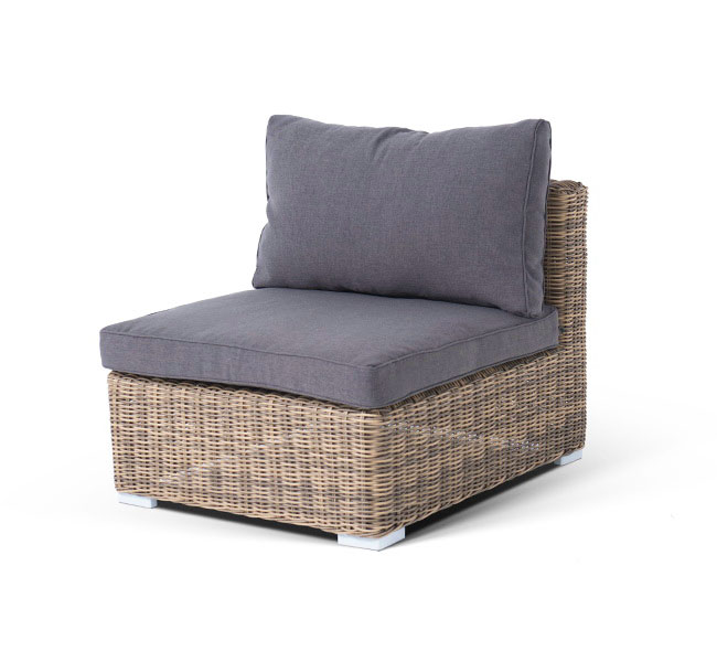 Прямой модуль «Лунго», выполненный из круглого искусственного ротанга натурального соломенного оттенка, позволяет использовать не только как самостоятельный элемент, но и быть частью лаунж-зоны, в которую данная модель превосходно интегрируется.