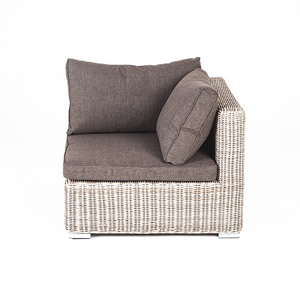 «Лунго» угловой модуль из круглого искусственного ротанга, является неотъемлемой частью лаунж-зоны, в своем основании имеет каркас из алюминия, который вручную оплетен ротангом бежевого цвета.