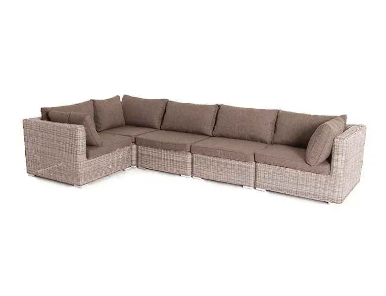 Трансформирующийся диван «Лунго» подходит для одновременного размещения пяти персон. Его каркас выполнен из прочного алюминия.