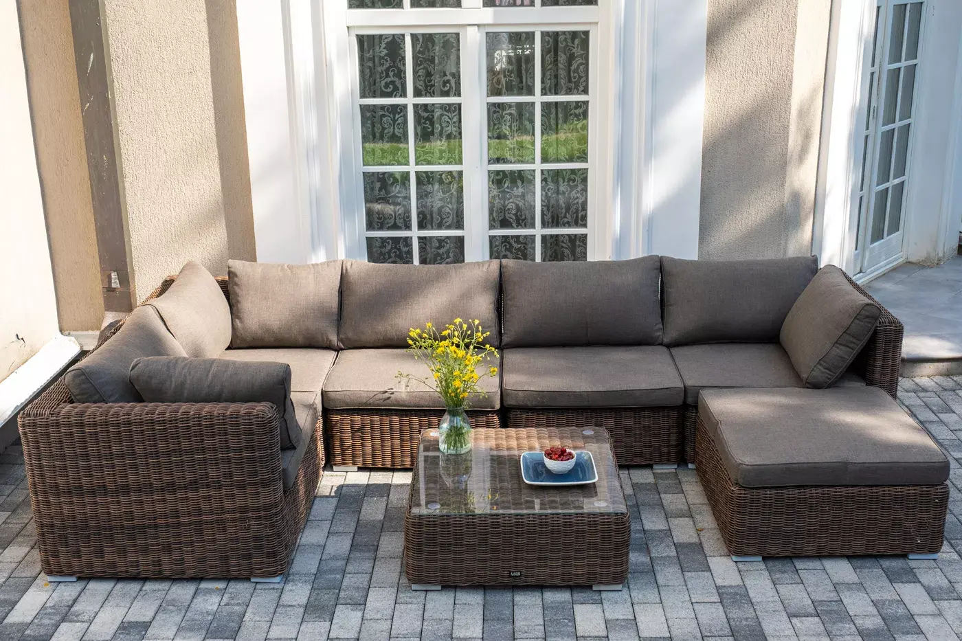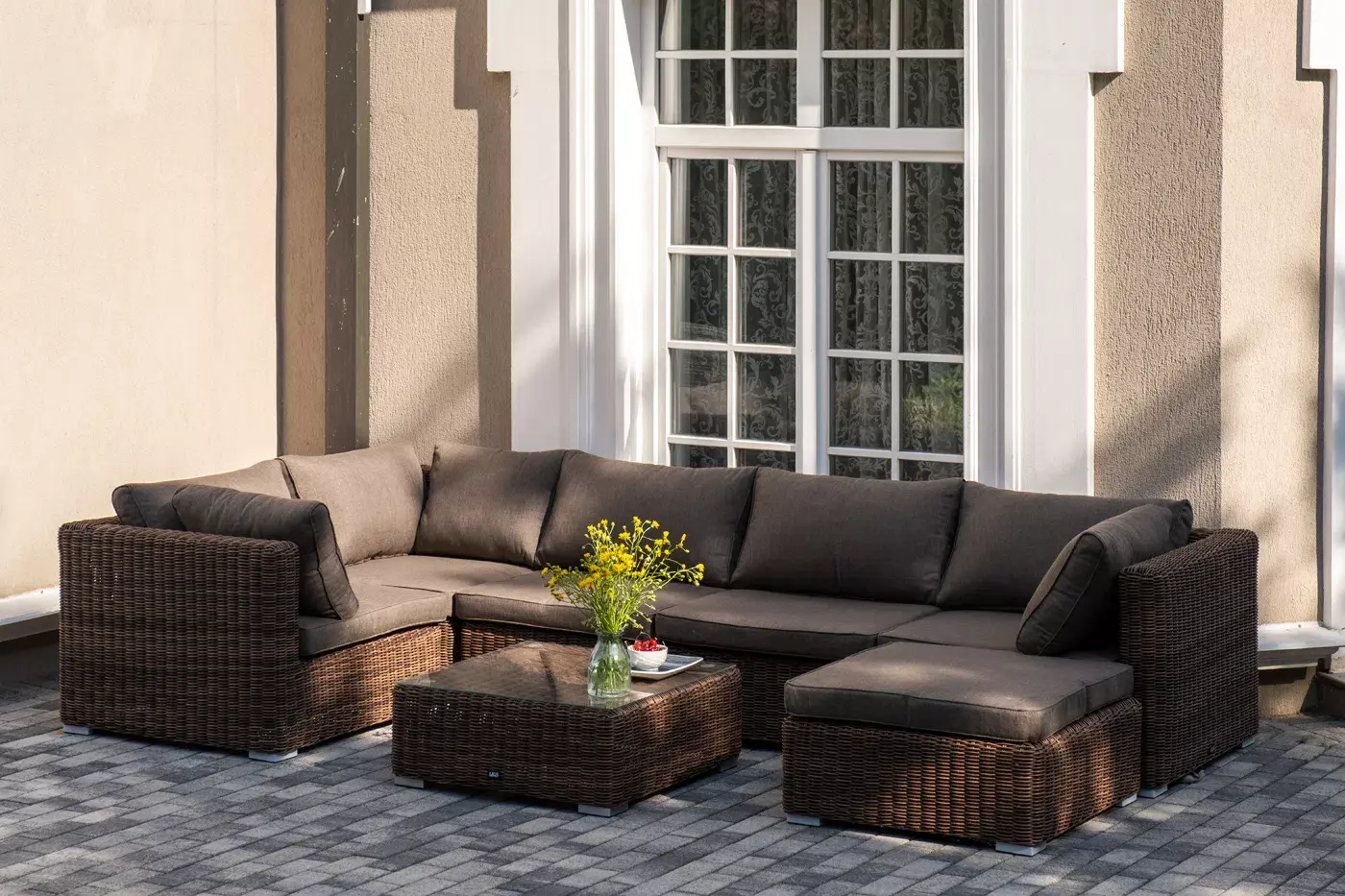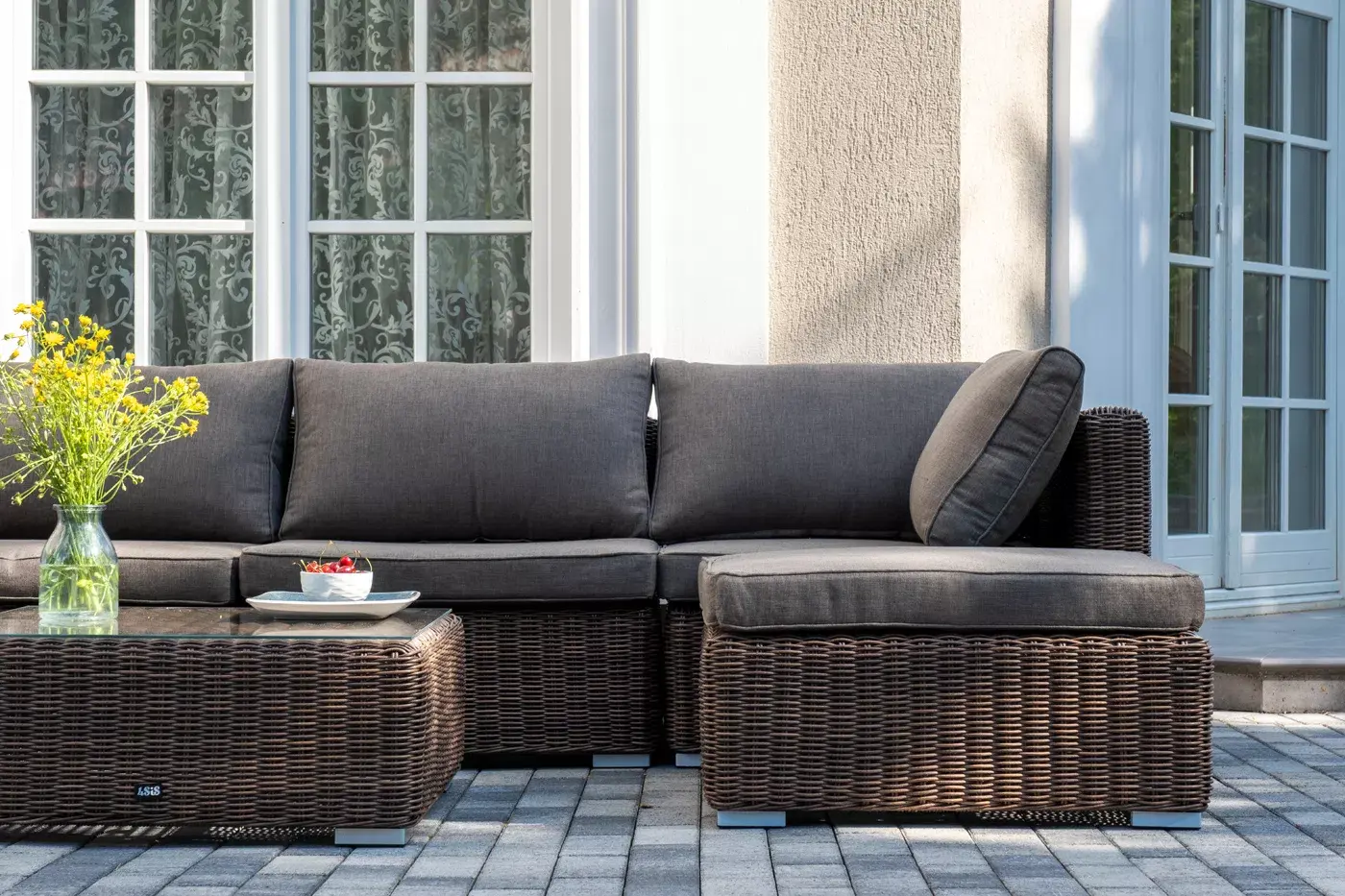 Составная и легко трансформирующаяся лаунж-зона «Лунго» гармонично дополнит зону отдыха на частной территории.